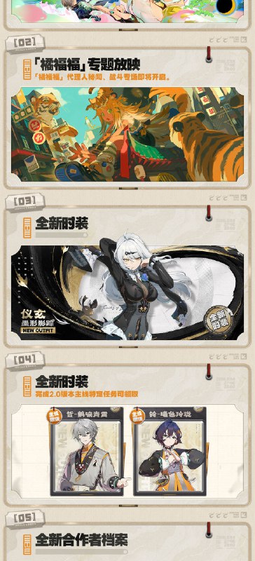 全新代理人「仪玄」、「橘福福」、「潘引壶」即将登场,更有全新主城、全新剧情、全新玩法活动等第二季最新内容,都将在2.0版本与绳匠见面,敬请期待!